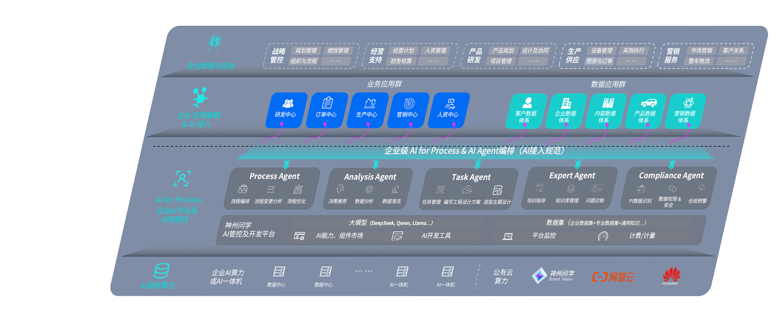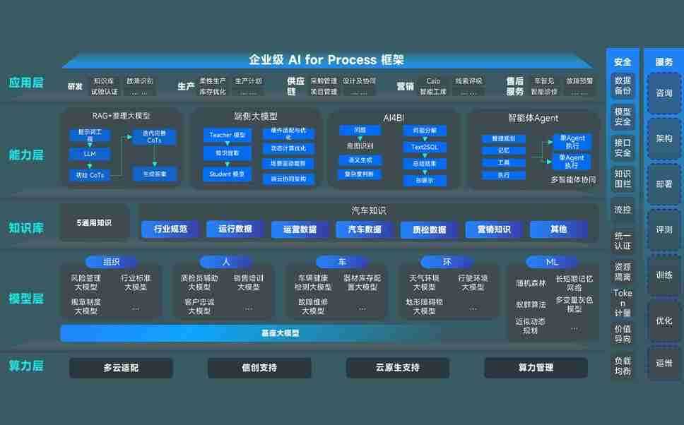 AG尊龙凯时问学智车解决方案是一套基于AI技术的汽车行业智能化系统,,,覆盖从底层算力到顶层AI应用的全栈方案。。。。方案由算力层、、、模型层和应用层组成:算力层,,,方案支持多种一体机配置,,,具备云端灵活部署、、多云适配以及动态优化计算资源的能力;模型层,,AG尊龙凯时问学平台版提供了企业级AI应用一站式构建与管理平台,,,,支持基于后训练强化技术的汽车企业专属模型的训练、、评测和运营;应用层,,AG尊龙凯时问学DeepSeek版提供包括超级员工、、、智能招采、、、、智能营销、、、、智能客服、、AI for BI等一系列解决方案,,,,可助力汽车行业实现数字化转型,,,让管理更智能、、、、响应更敏捷。。。